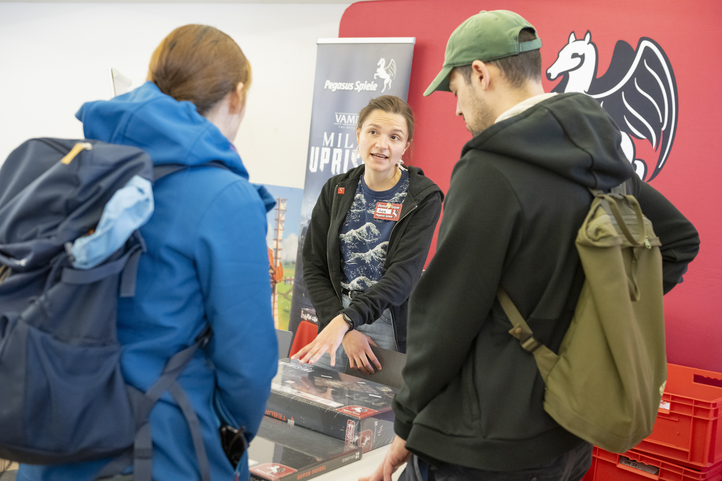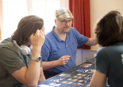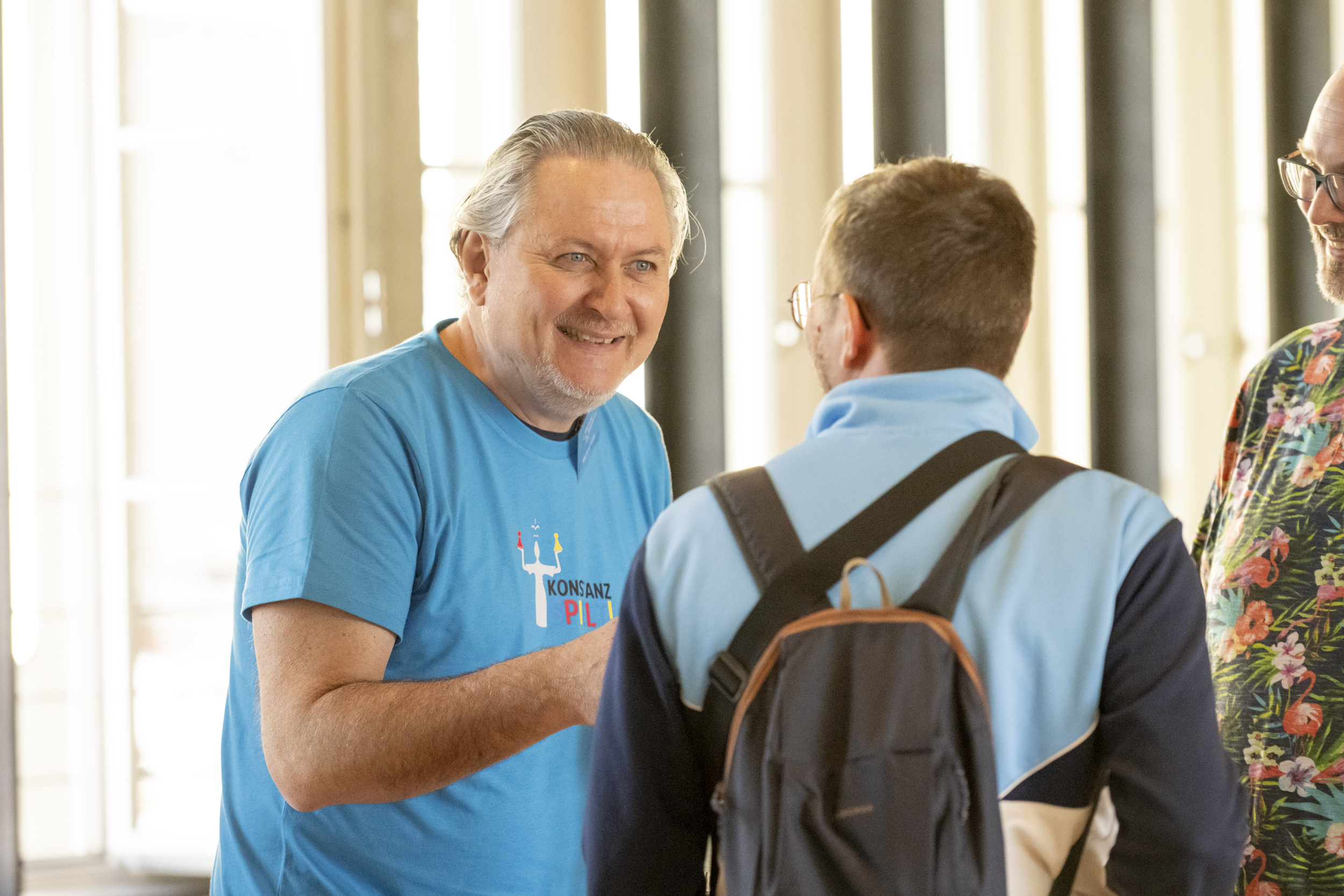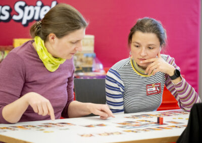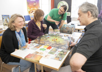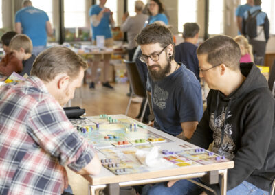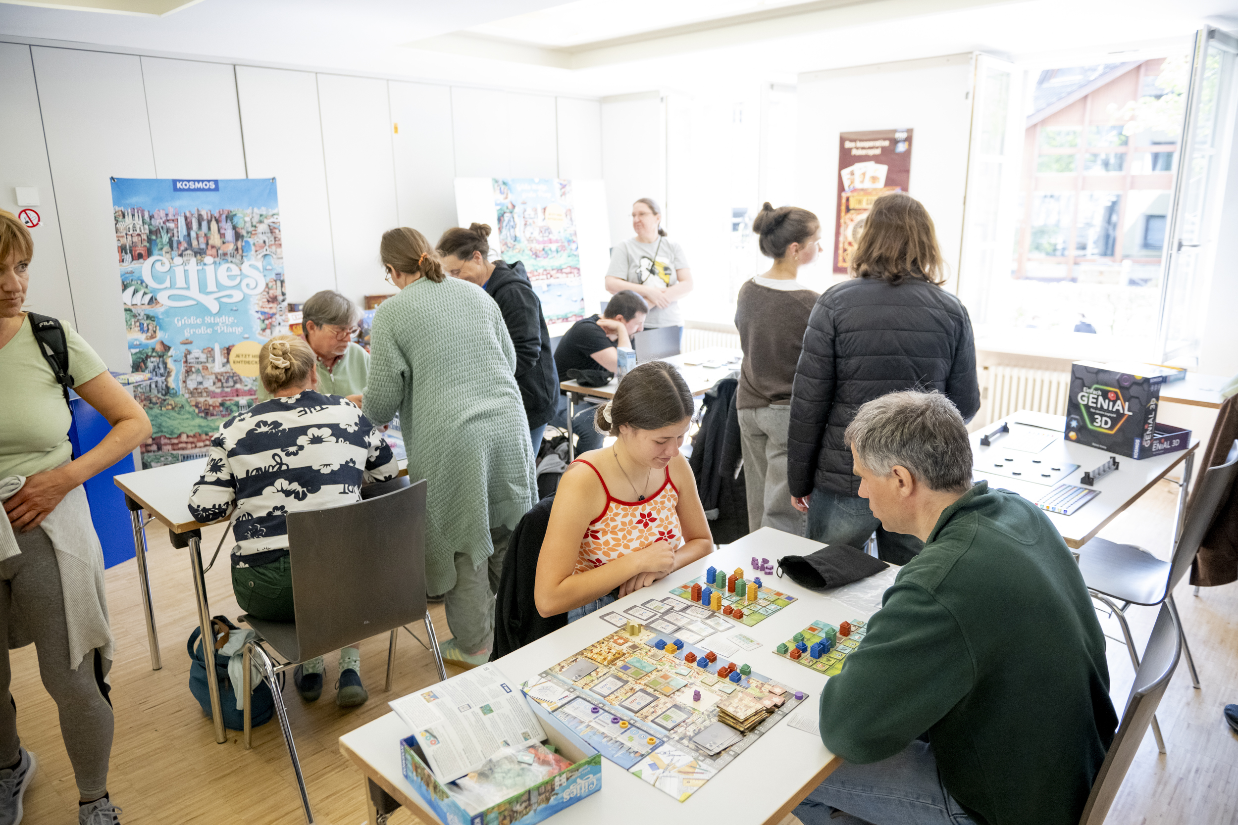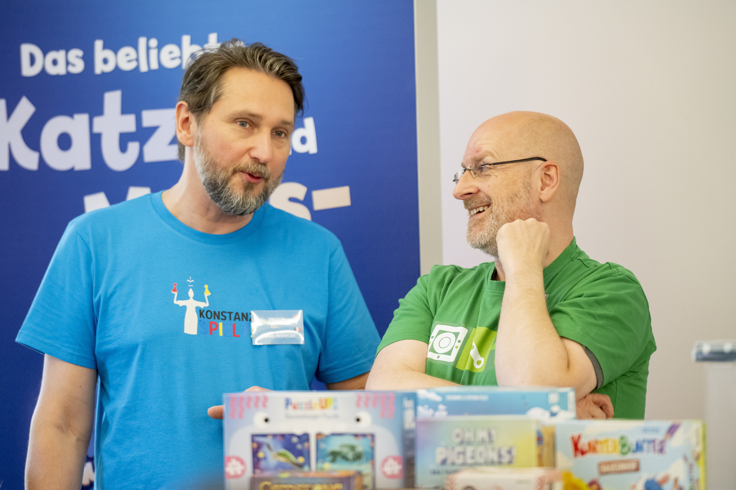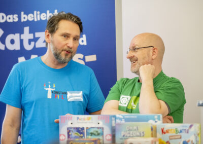 Rückblick auf Konstanz SPIELT! 2025 Was geboten war NGroße Spieleausleihe mit Spielareal (ca. 400 Spiele plus Erklärer:innen) NVerlage präsentieren ihre Neuheiten (z.B. Kosmos, Ravensburger, u.v.m.) NMobile Ludothek mit Spiel des Jahres Titeln NPrototypen testen NFragerunde Spiel des Jahres Preisträger NBereich mit sprachneutralen Spielen NBereich mit Spieleklassikern NSpielen in verschiedenen Kulturen NAngebot für Kinder (z. B. TipToi) NManga-Zeichner inkl. Workshop NCuboro Murmelbahn-Turnier NRätselraum von Schlüsselmomente NBlood on the Clocktower (mit Voranmeldung) NRollenspiel-Runden NTAC-Raum inklusive Einführungsrunden