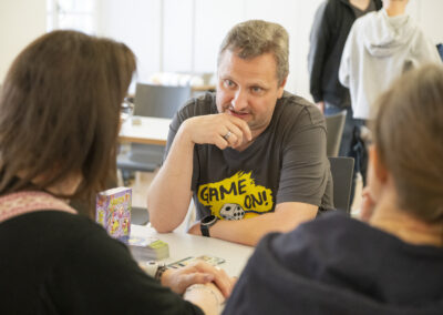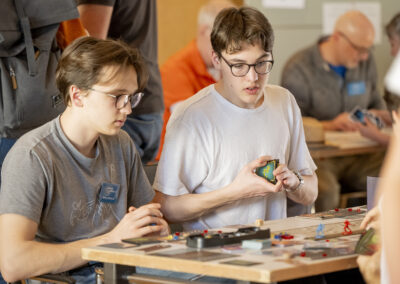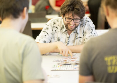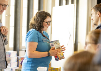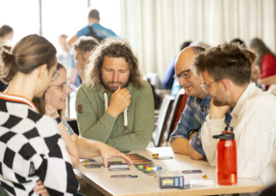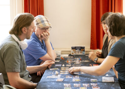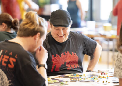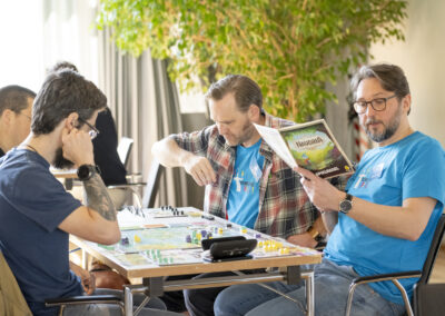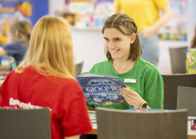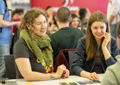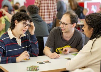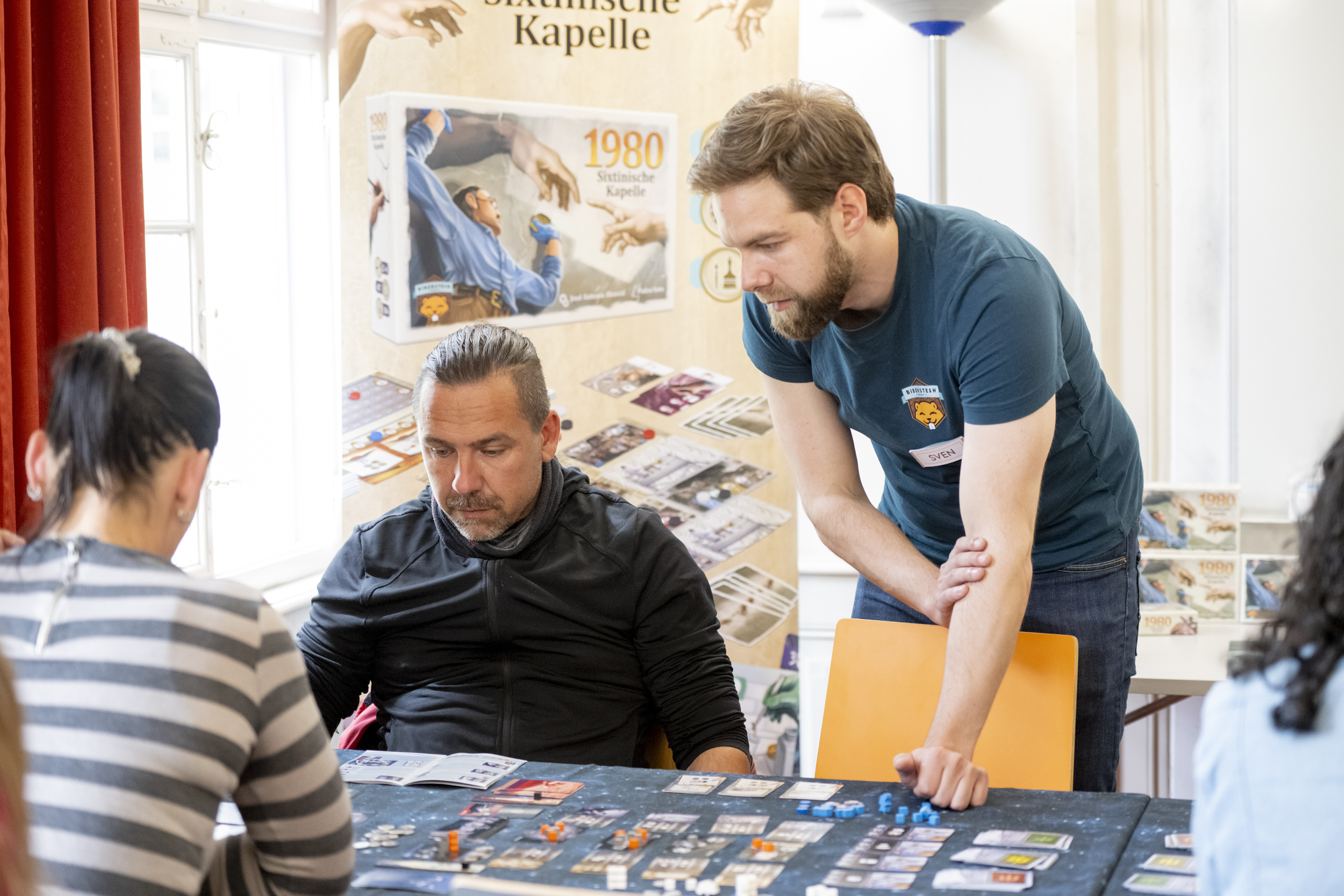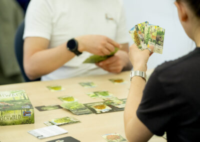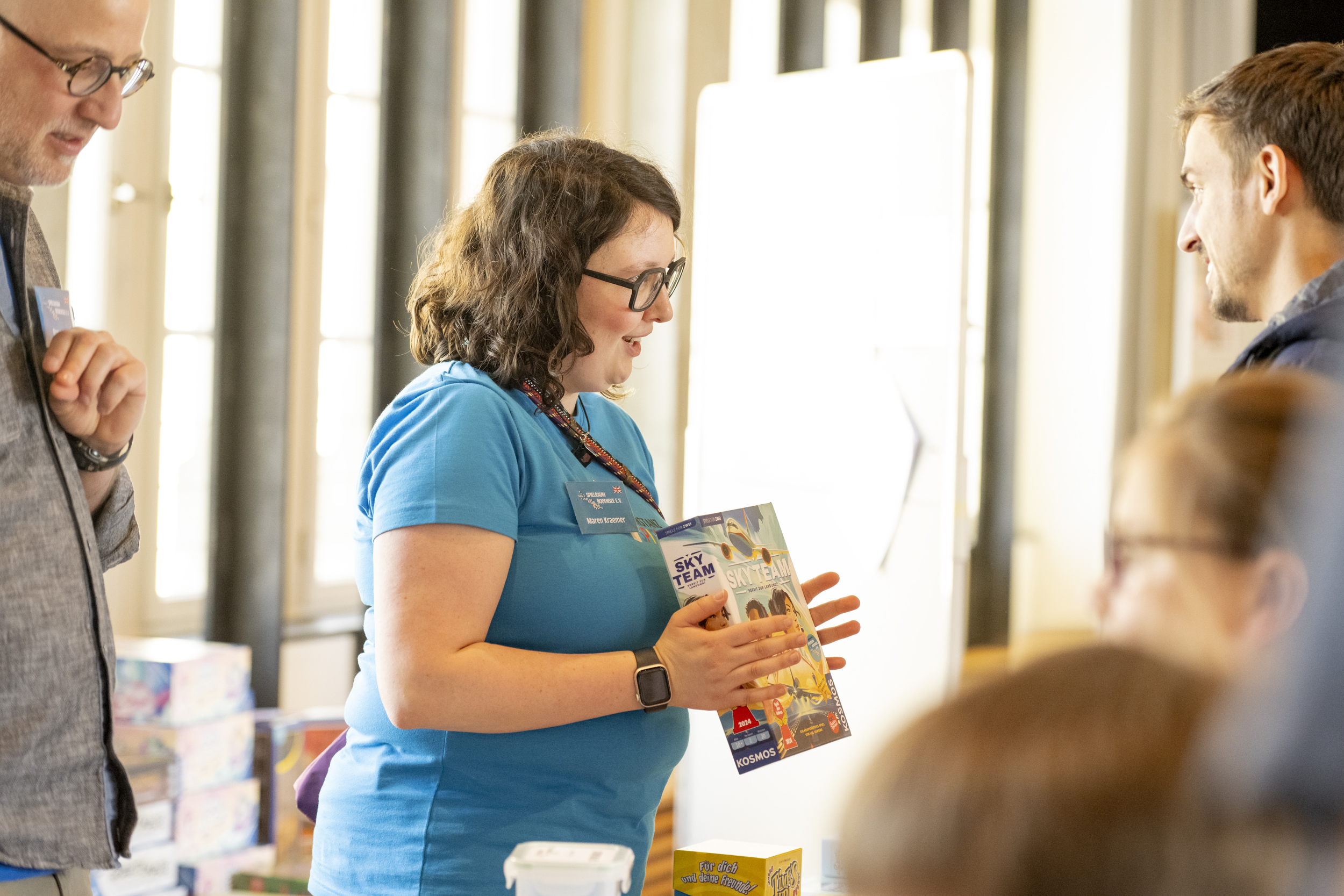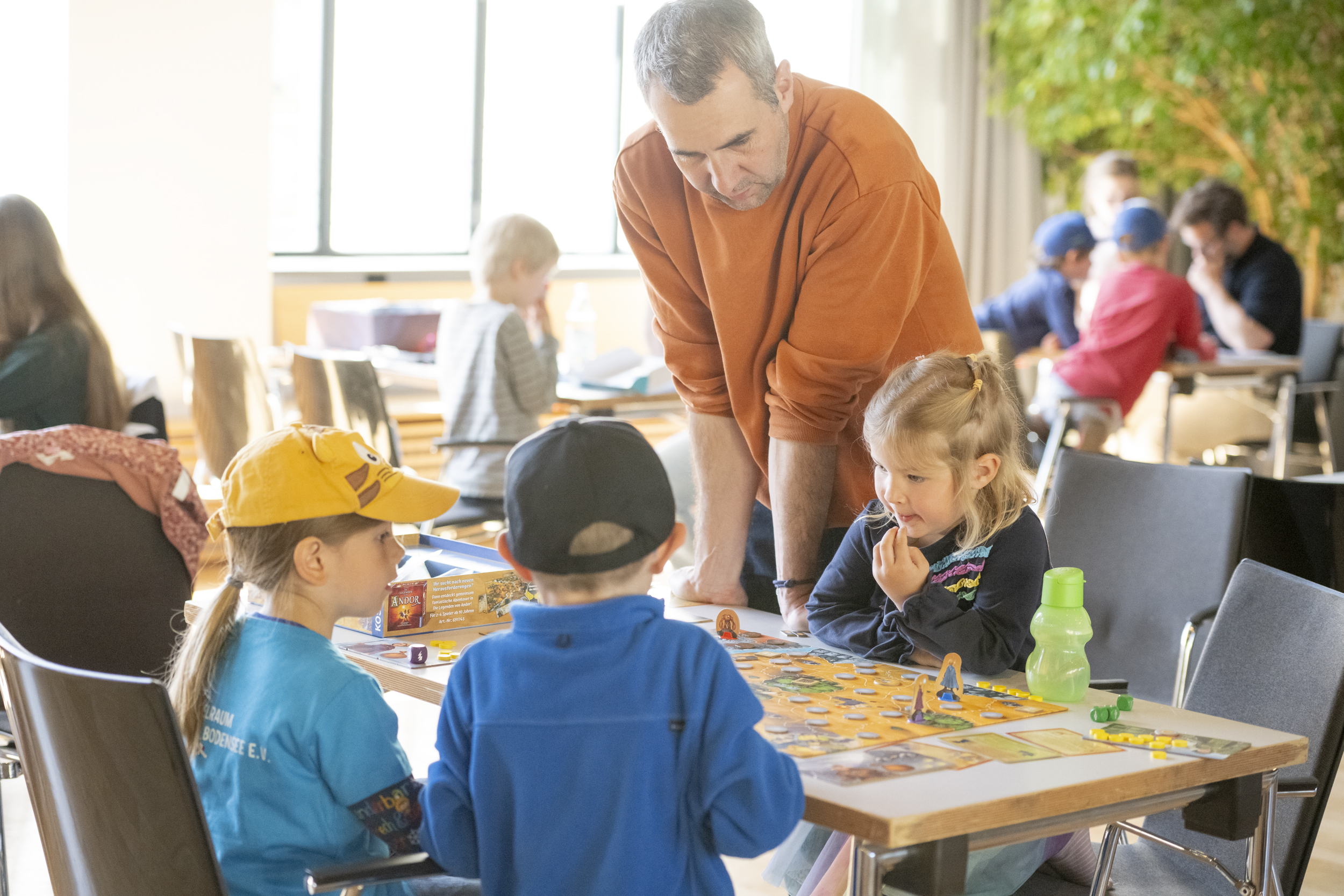 Rückblick auf Konstanz SPIELT! 2025 Was geboten war NGroße Spieleausleihe mit Spielareal (ca. 400 Spiele plus Erklärer:innen) NVerlage präsentieren ihre Neuheiten (z.B. Kosmos, Ravensburger, u.v.m.) NMobile Ludothek mit Spiel des Jahres Titeln NPrototypen testen NFragerunde Spiel des Jahres Preisträger NBereich mit sprachneutralen Spielen NBereich mit Spieleklassikern NSpielen in verschiedenen Kulturen NAngebot für Kinder (z. B. TipToi) NManga-Zeichner inkl. Workshop NCuboro Murmelbahn-Turnier NRätselraum von Schlüsselmomente NBlood on the Clocktower (mit Voranmeldung) NRollenspiel-Runden NTAC-Raum inklusive Einführungsrunden